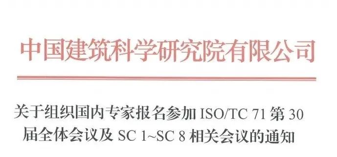 为促进国内专家积极参与混凝土领域的国际标准化工作,中国建筑科学研究院有限公司(以下简称“中国建研院”)作为国内技术对口单位,负责组织国内有关单位及专家报名参加ISO/TC 71第30届全体会议及SC 1~SC 8相关会议。