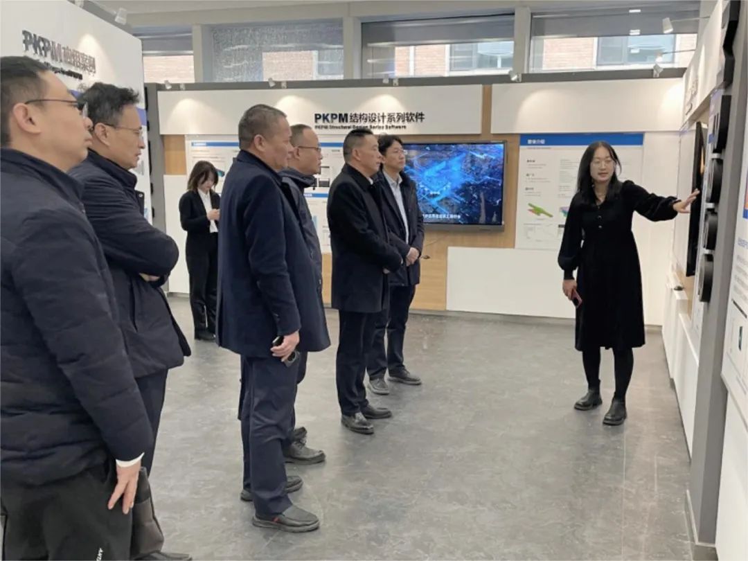 会前,梁超一行参观了中国建研院展厅、明陞m88体育网址数字科技展厅,了解了中国建研院的历史与发展,以及明陞m88体育网址在国产自主软件开发、关键核心技术攻关及最新BIM应用方面的研究成果。