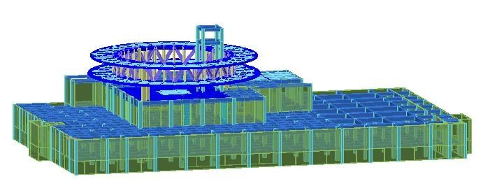 这个项目还凝聚了我们多专业工程师的智慧和汗水,并对钢结构环廊进行了强度和稳定以及节点分析;研究确定了悬挑端的变形限值,完成了变形分析;对不同楼面方案进行了舒适度对比;对环廊支座进行了抗震性能分析等,通过了专家专项论证会,完成了结构和机电的初步设计工作。