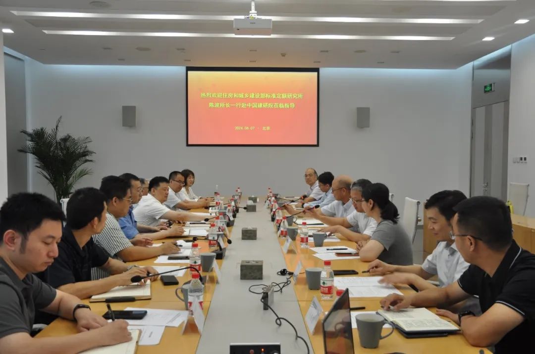 6月7日,住房城乡建设部标准定额研究所陈波一行到中国建研院调研交流。标准定额研究所副所长施鹏、李大伟,城乡建设产品标准处处长姚涛,信息出版处处长张宏,城乡建设工程标准处副处长孙智、张惠锋,以及有关部门负责同志参加调研,中国建研院党委书记、董事长、总经理许杰峰,党委委员、副总经理尹波,明陞m88体育网址党委书记、董事长刘军进,副总裁马恩成等领导陪同调研。
