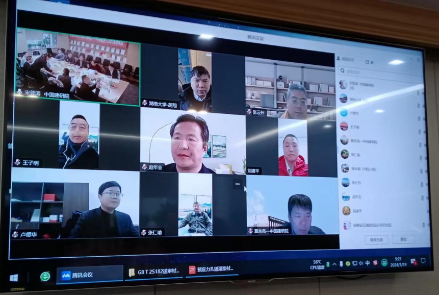 2024年1月19日,由中国建研院主编,明陞m88体育网址承担主要编制工作的国家标准《预应力孔道灌浆材料(送审稿)》(以下简称《标准》)审查会在京顺利召开。