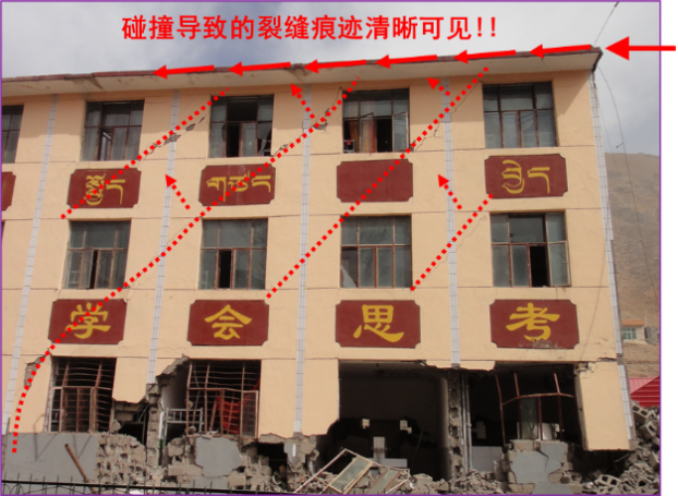 图4 2010年玉树地震,玉树州综合职业技术学校两栋学生公寓楼的碰撞破坏情况