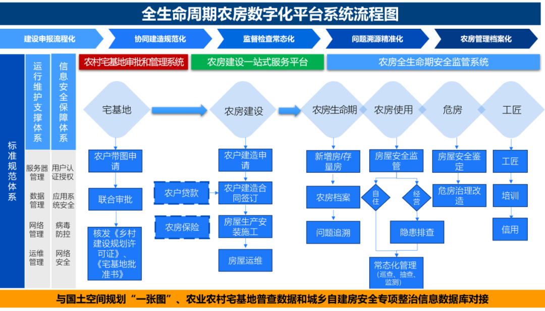 因此,明陞m88体育网址基于国产数字平台研发了智慧农房全过程数字化平台,该平台包含了农村宅基地审批和管理系统、农房全生命期安全监管系统,以及农房建设一站式服务平台。建立了农房用地、规划、建设、使用全过程管理制度,为农建房提供了一站式服务。