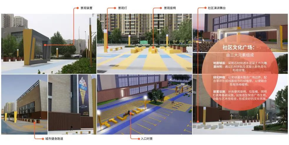 重新规划广场,结合场地现状,通过铺装设计、绿化提升、设施补齐,面向周边居民提供室外休闲活动场地。以最少的代价完成空间再造。