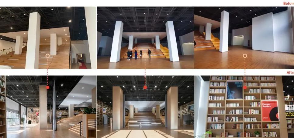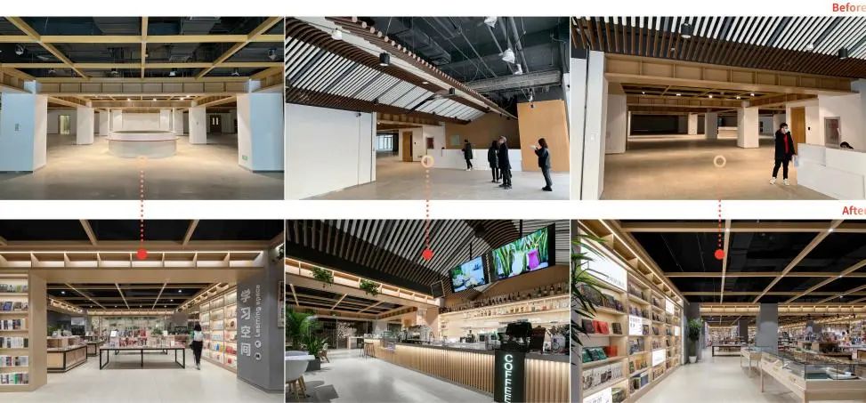 尊重原场地设计,进行了多层次、多频率的渐进式微更新。更新的方式不只是传统的土建装饰,通过软文化多层次置入,以较少的代价改变原有空间的属性,创造新的内容运营平台。为居民打造“美学生活方式提案平台”一个家门口的远方。