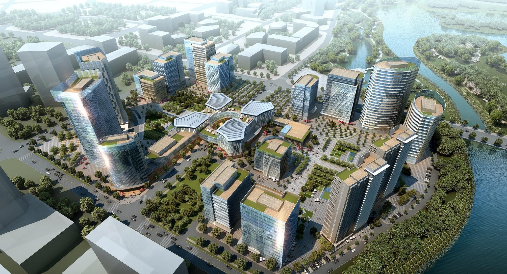 总体布局本着建设一个国际化、智能化的绿色低碳建筑园,考虑最大化的 开放及视野空间的各自隐私,考虑工艺使用要求并注重与自然地形的有机结 合,在现代绿色的模式下,塑造一个花园式高科技的创新园区,利用张弛有序 的组团式围合广场构成丰富的空间层次。研发办公楼群注重对城市的塑造,创 造出良好的环境和丰富的城市空间,形成优美的城市轮廓;综合服务楼供应商 业便利服务,点亮创新中心内院和纵向中央大道,动感、现代、时尚,以醒目 的方式展现在城市里;生活区相对独立安静,为工作中心里的人们提供安静、 便利的条件:规划合理的开发时序,以道路和基础设施建设为先导,各功能区 可独立建设,循序渐进,注重节约资源和保护环境,推进和谐社会发展。
