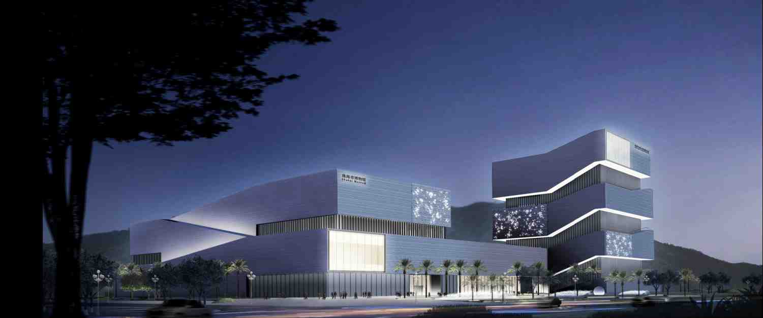 珠海博物馆的水平造型与内陆的山区景观相互呼应,城市规划馆则成塔状,面向珠海湾。规划馆位于塔状建筑内,螺旋状的体量沿立方体状的塔楼盘旋而上,不但使建筑造型极富立体感,而且体现出建筑内部的流线,功能分区清晰明确。城市规划展览馆与博物馆相连,将螺旋状的流线融入到宽阔的建筑体量中,高度适中,以提供连贯宽敞的展览空间。博物馆和城市规划展览馆的功能独立,同时又相互连接,因此可以共享公共功能空间。