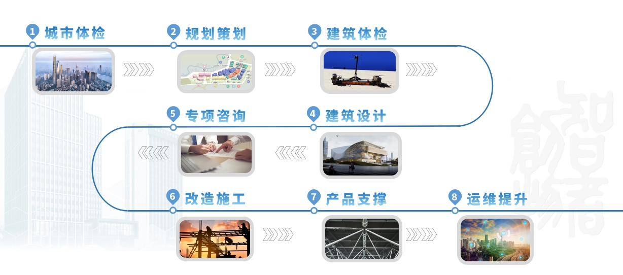 在此形势下,公司整合内外部优势资源,着力打造全产业链一体化解决方案。公司编制了多本既有建筑改造方面的标准规范,拥有多年的技术积累和丰富的工程经验,可为建筑改造和城市更新项目提供从前期方案策划、检测鉴定,到综合设计、专业施工,直至后期建筑监测、运维管理的一体化解决方案。