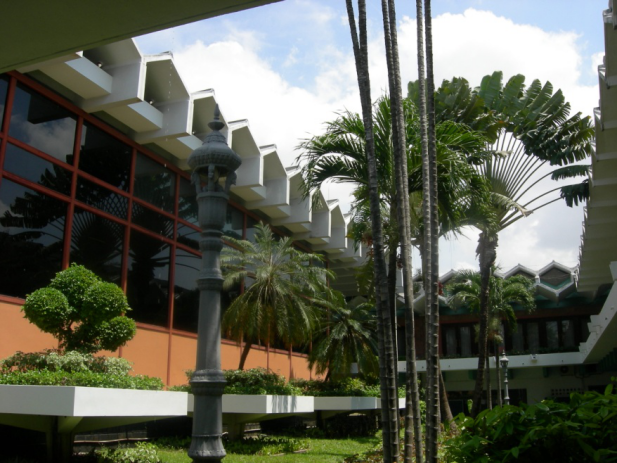 柬埔寨议会大厅为单层跨框架结构,议长办公楼为二层内框架结构,建于上世纪五十年代,超过设计使用年限,为保证结构安全,对该建筑进行检测鉴定,为加固设计提供依据。