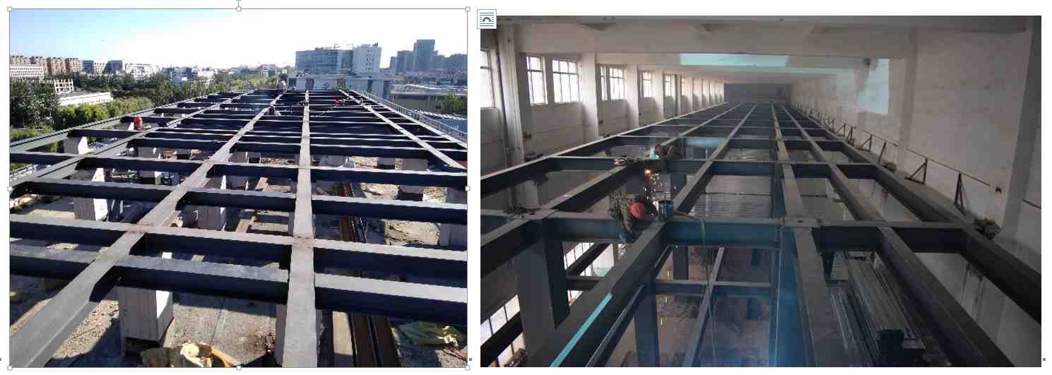 加固改造施工。建筑功能由钢结构厂房加固改为数据中心;主要加固形式为钢结构加固、基础加大截面加固等,总加固面积23000㎡。