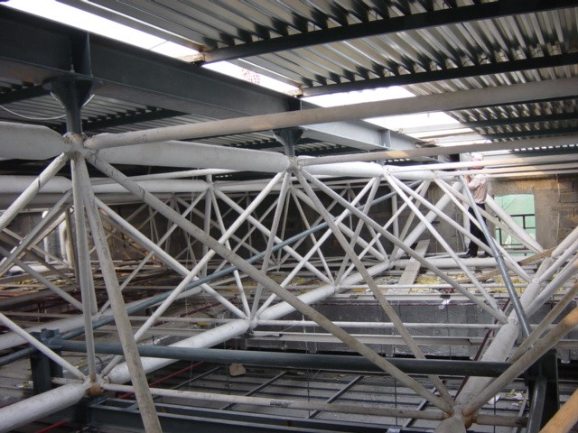 网架结构加固设计施工,包括钢板幕墙,钢吊顶,体外索加固网架。